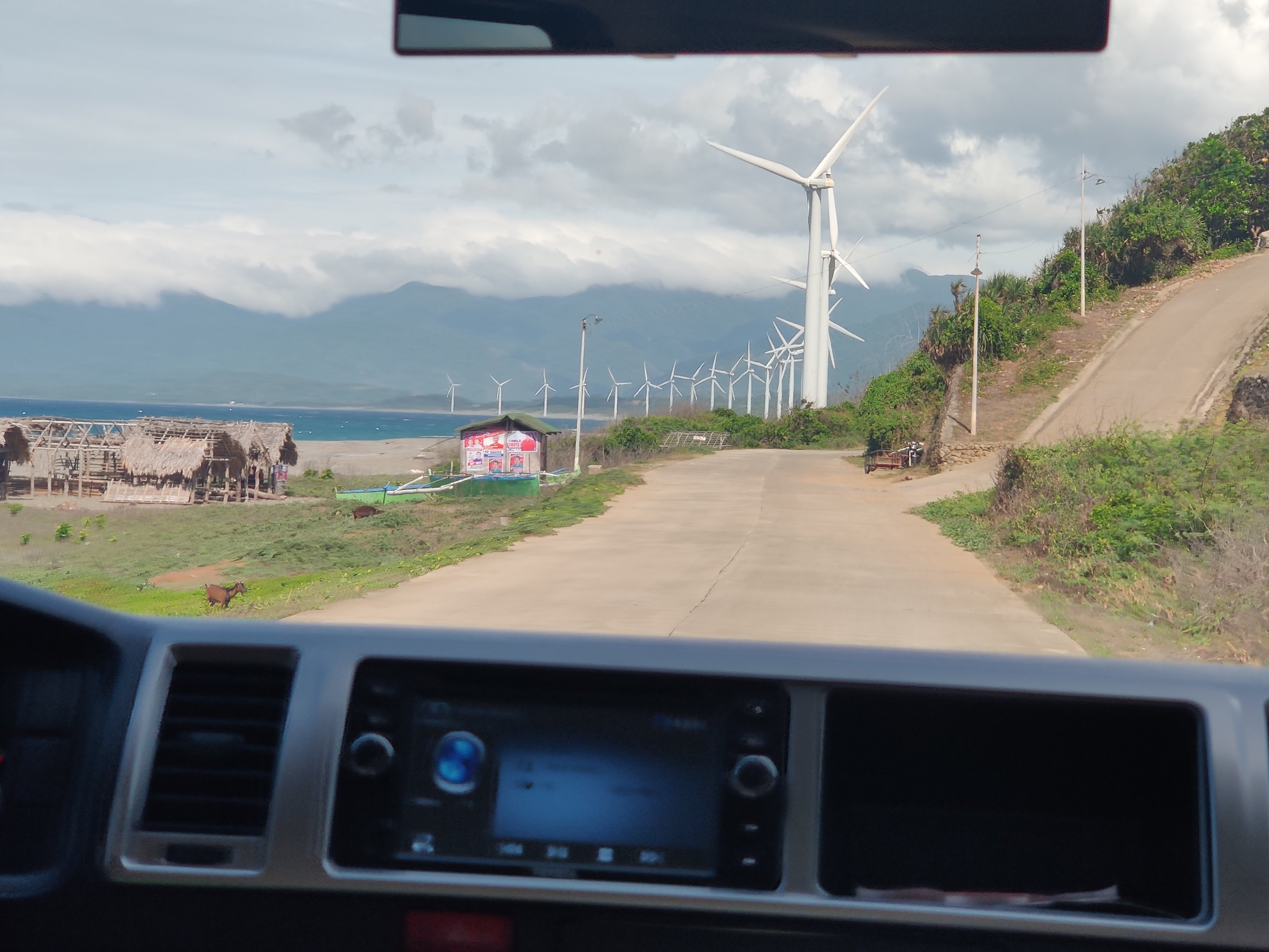 Driving by the scenic Bangui Windmills heading towards a beach in Ilocos Norte
