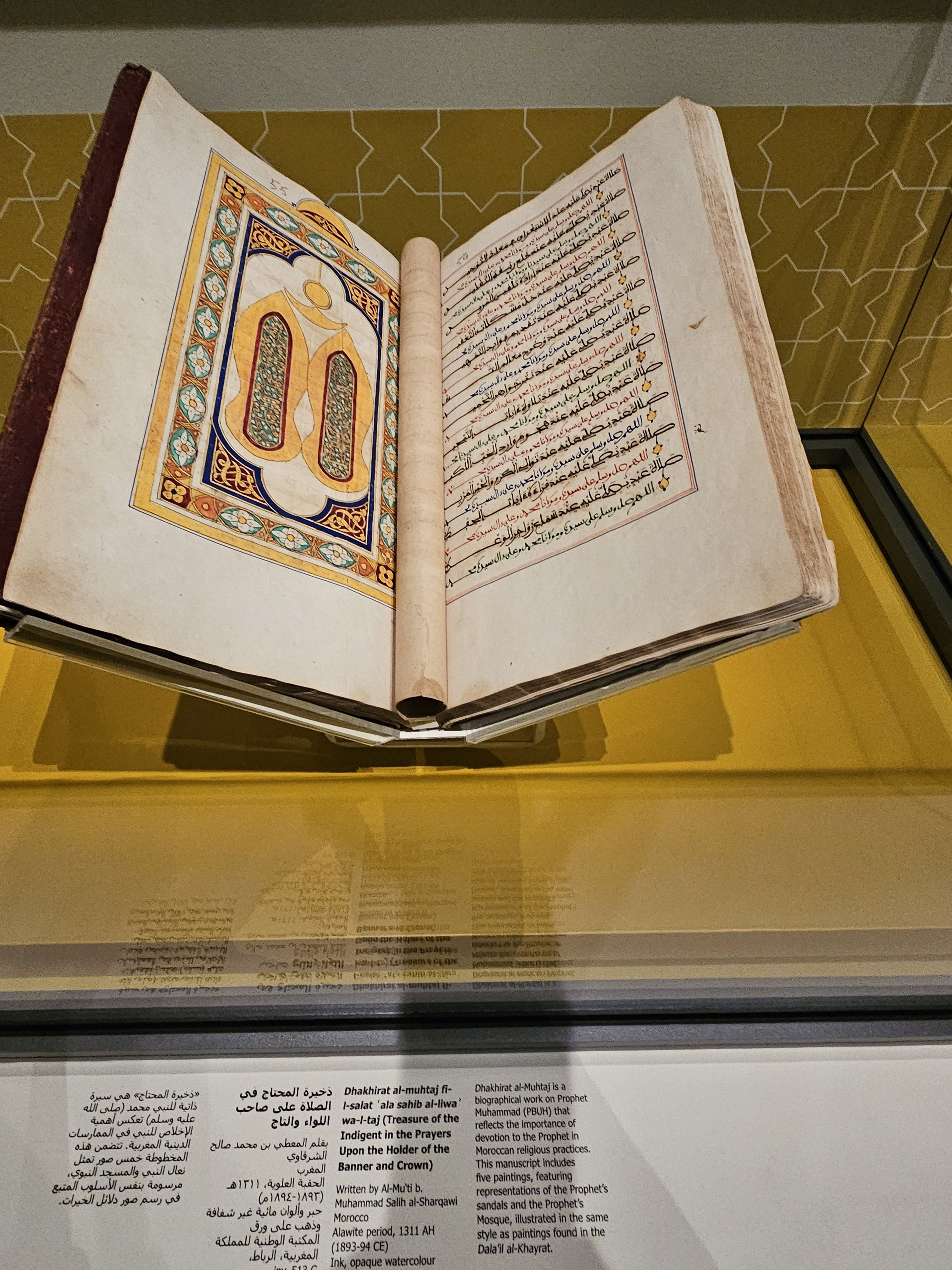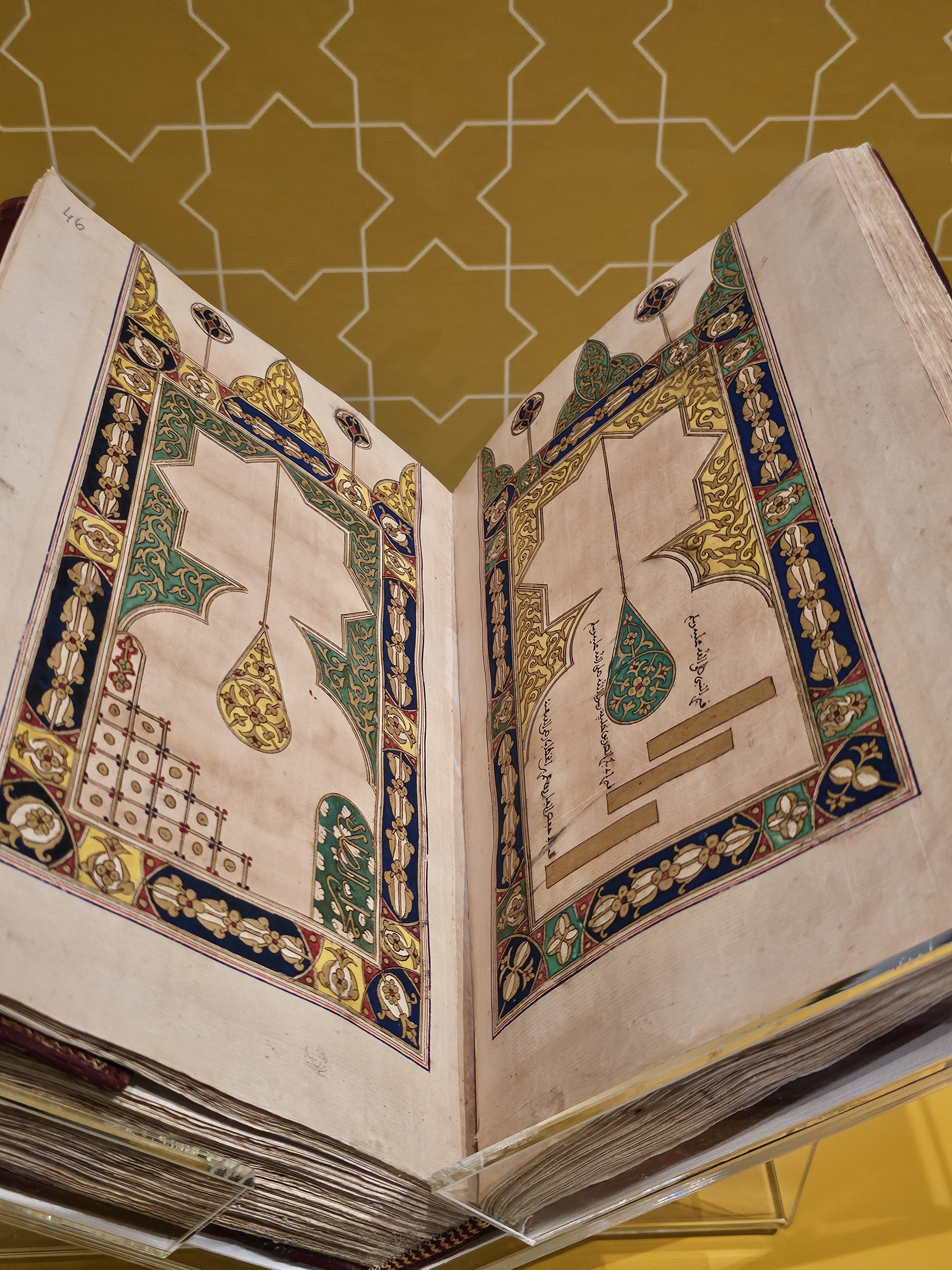 A beautiful intricate art of a historical manuscript on display in Qatar.