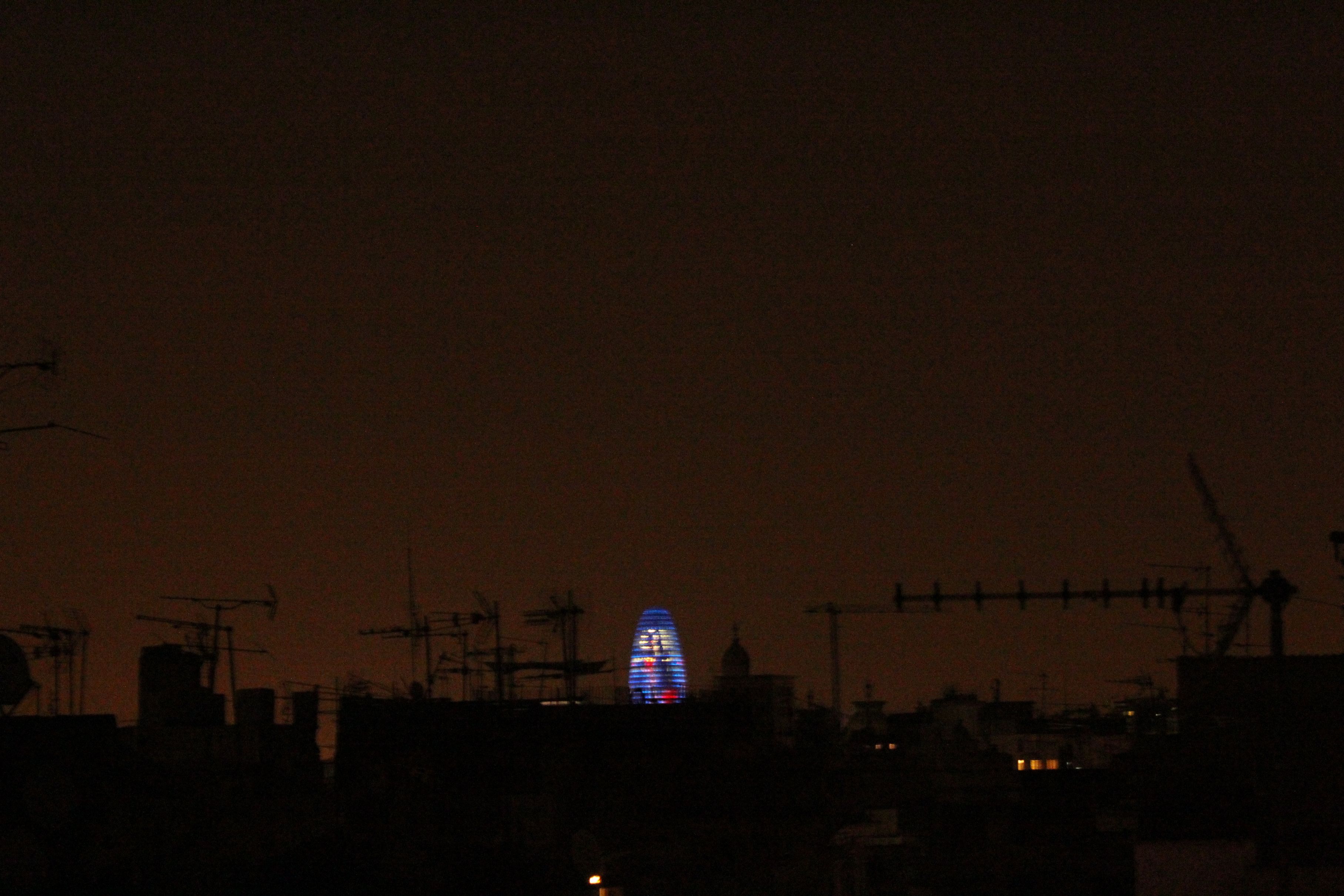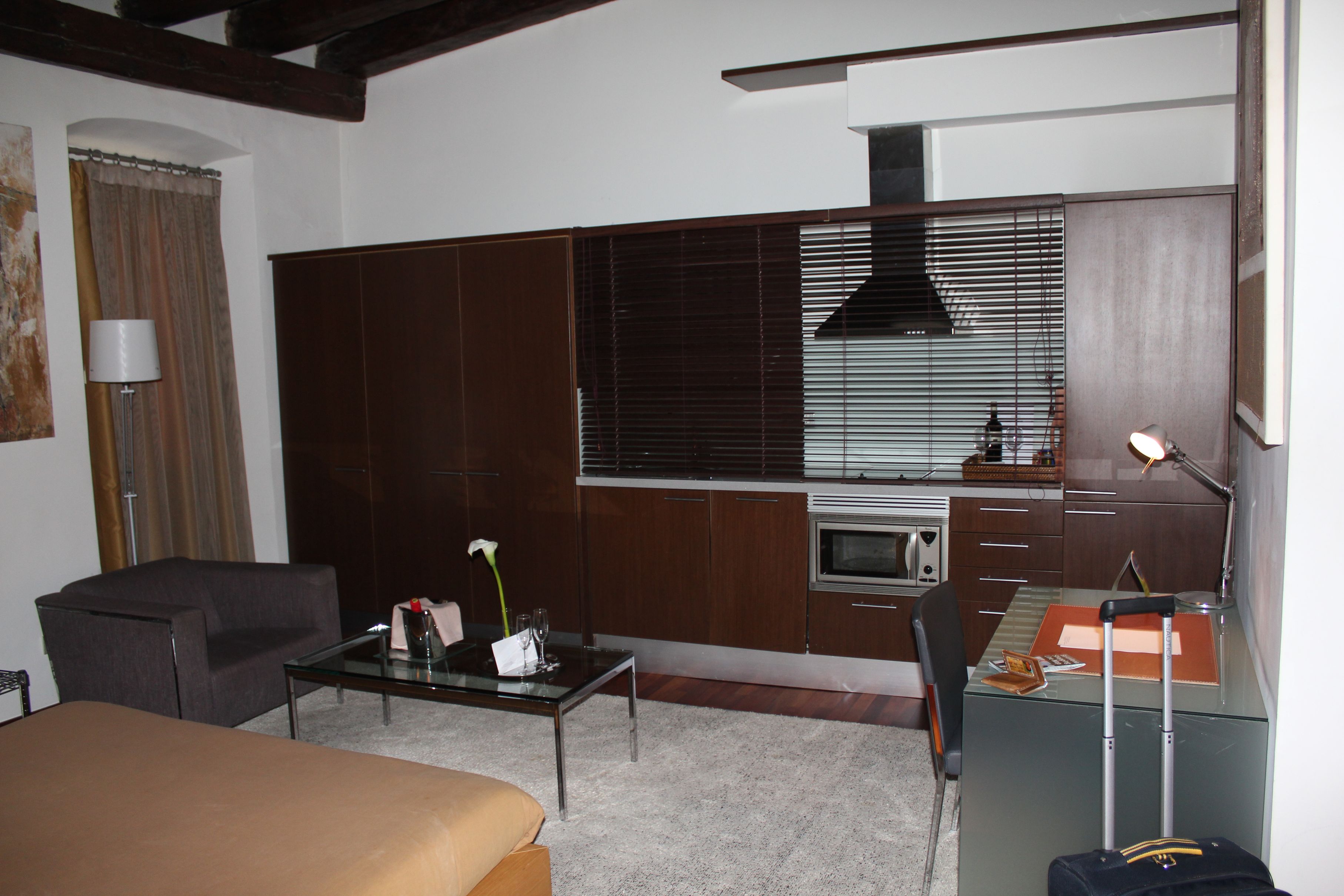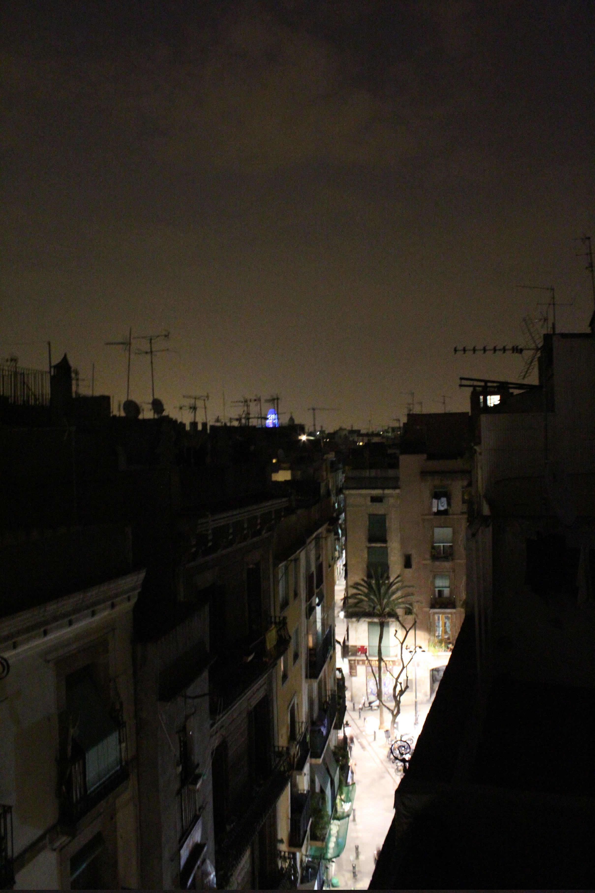 Stairway leading to a platform in Angela's hotel room in Barcelona