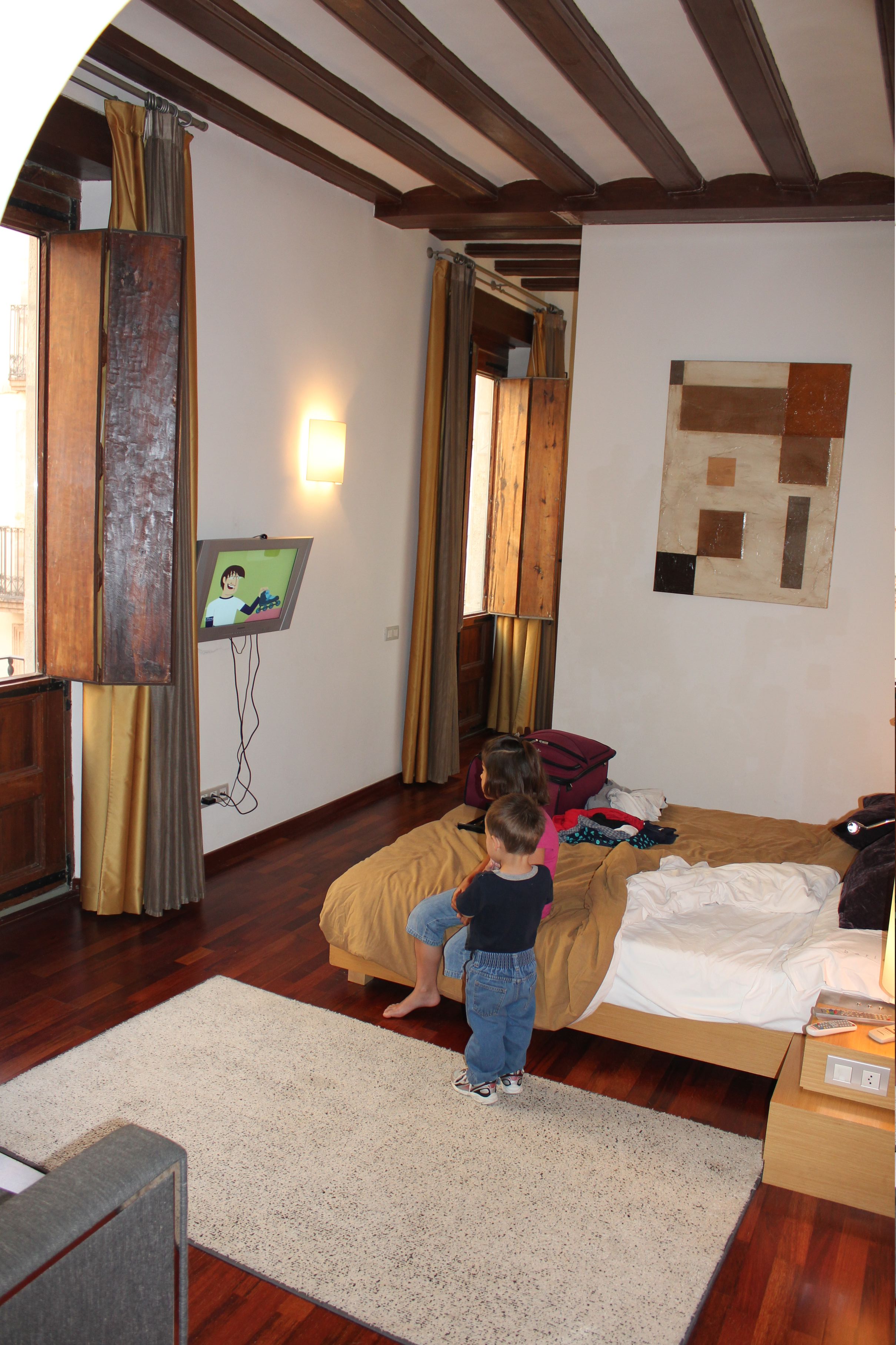 One half of our hotel suite in Barcelona...and Tia reading "The Help"