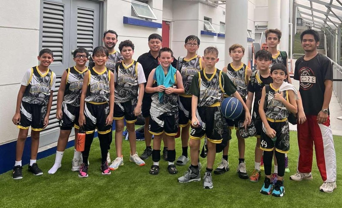 Blake with his White Dragon basketball team