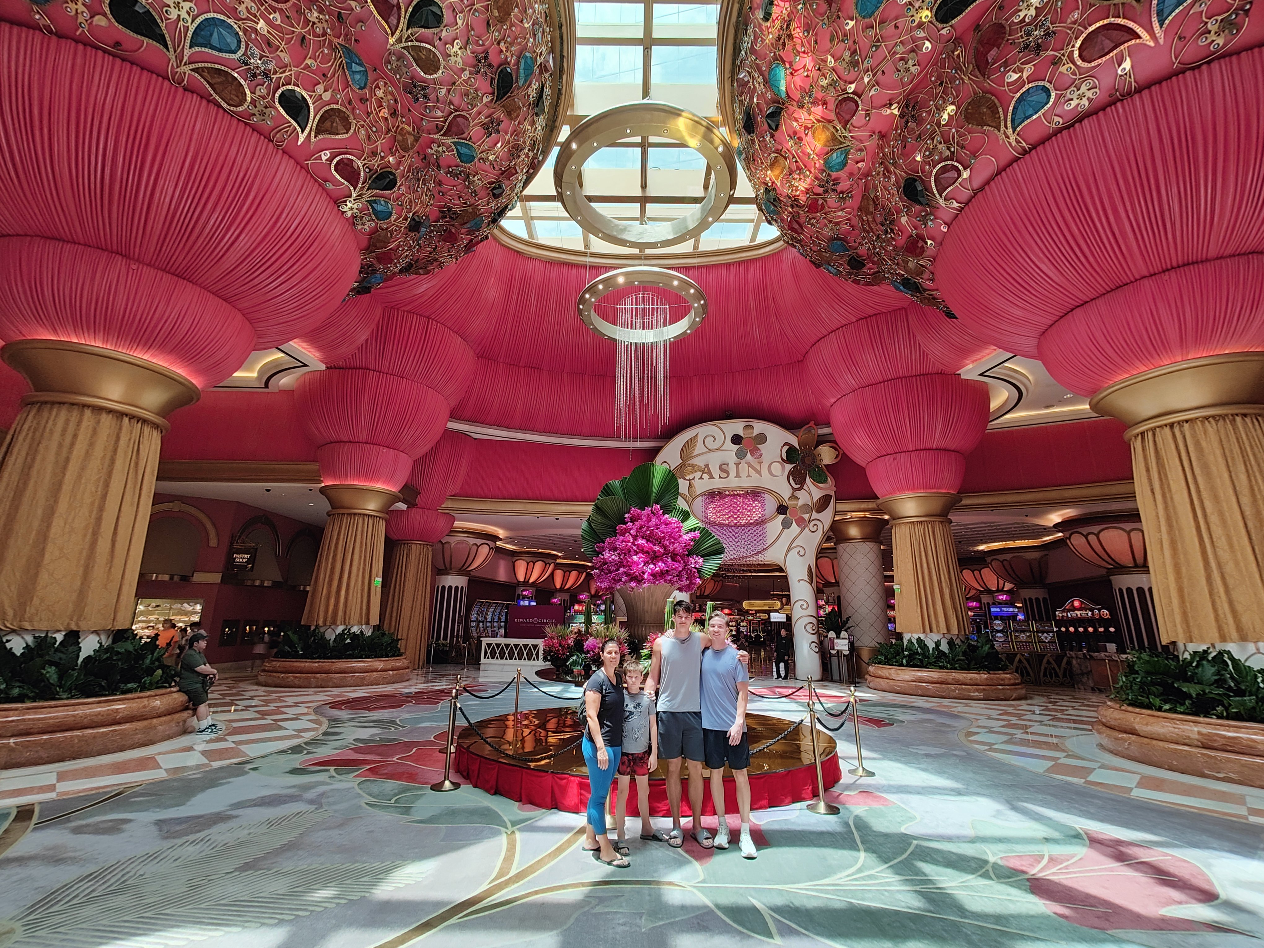 Family posing together in the opulent lobby of Okada casino